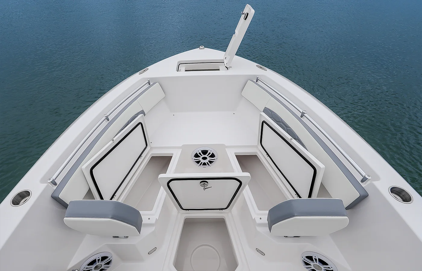 At the heart of this vessel is a fisherman’s dream. The spacious deck provides ample room for casting and reeling, while multiple rod holders and a large live bait well cater to all your fishing needs. The innovative design ensures every inch of space is optimized for the ultimate fishing experience.